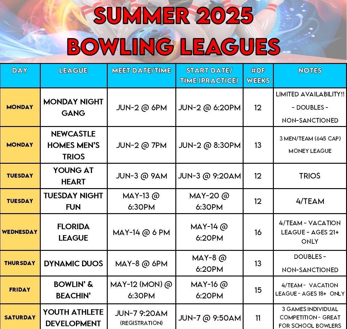 League pays for 1 night stay for each bowler (Florida Trip Dates - September 5th & 6th)